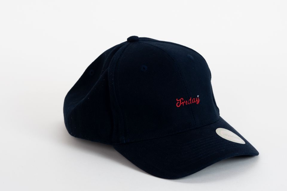 Sötétkék 6 panel baseball sapka, hímzett Friday logóval