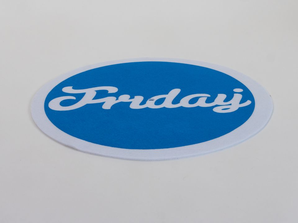 Fehér póló, elöl kék Friday logóval
