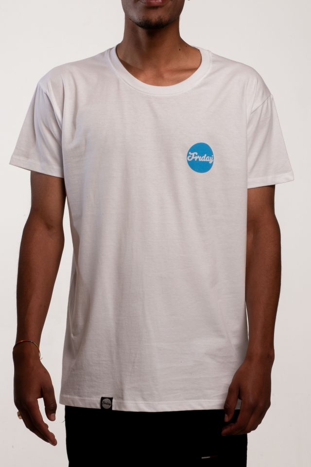 Fehér póló, elöl kék Friday logóval