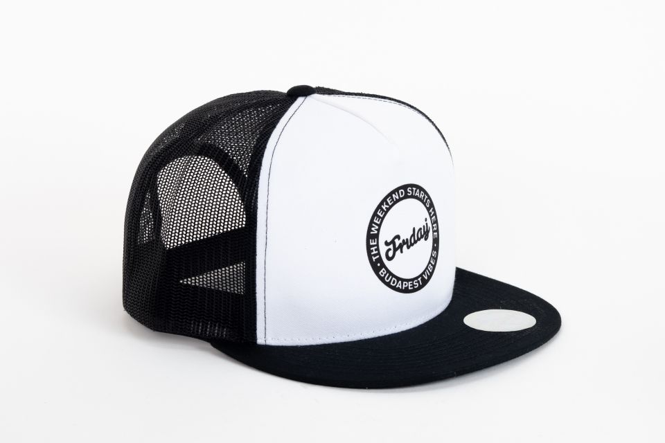 Fekete 5 panel trucker sapka, Friday logóval