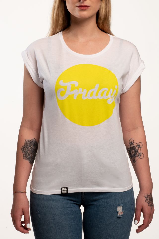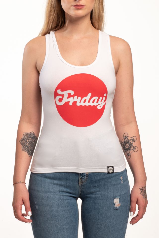 Fehér rövid női trikó, hátul kis Friday logóval