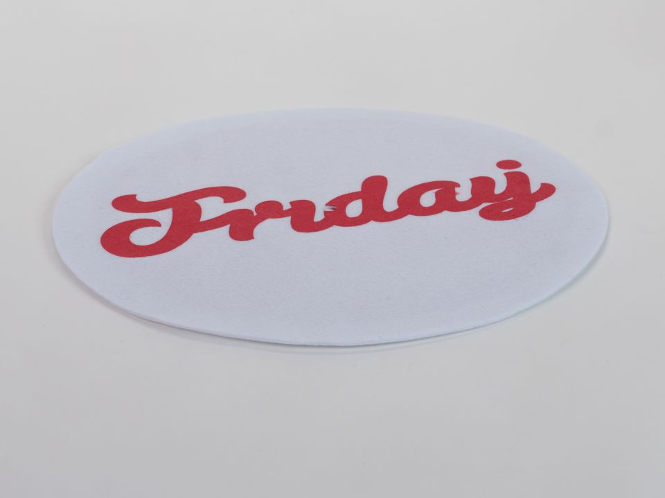 Fehér póló, piros Friday felirattal