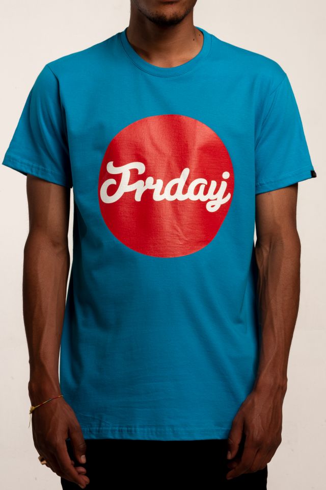 Kék póló, fehér Friday felirattal