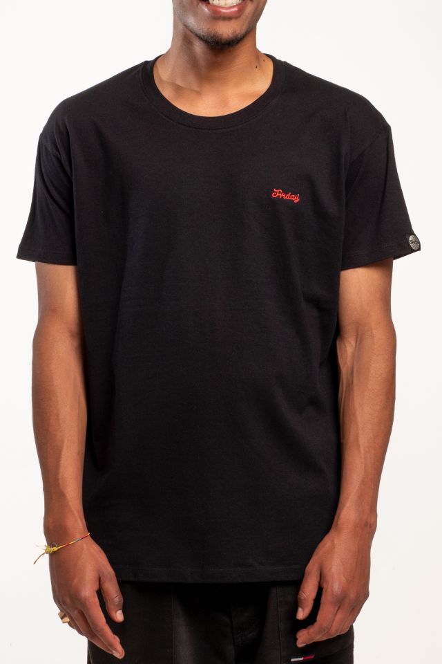 Fekete póló, mellén hímzett Friday felirat