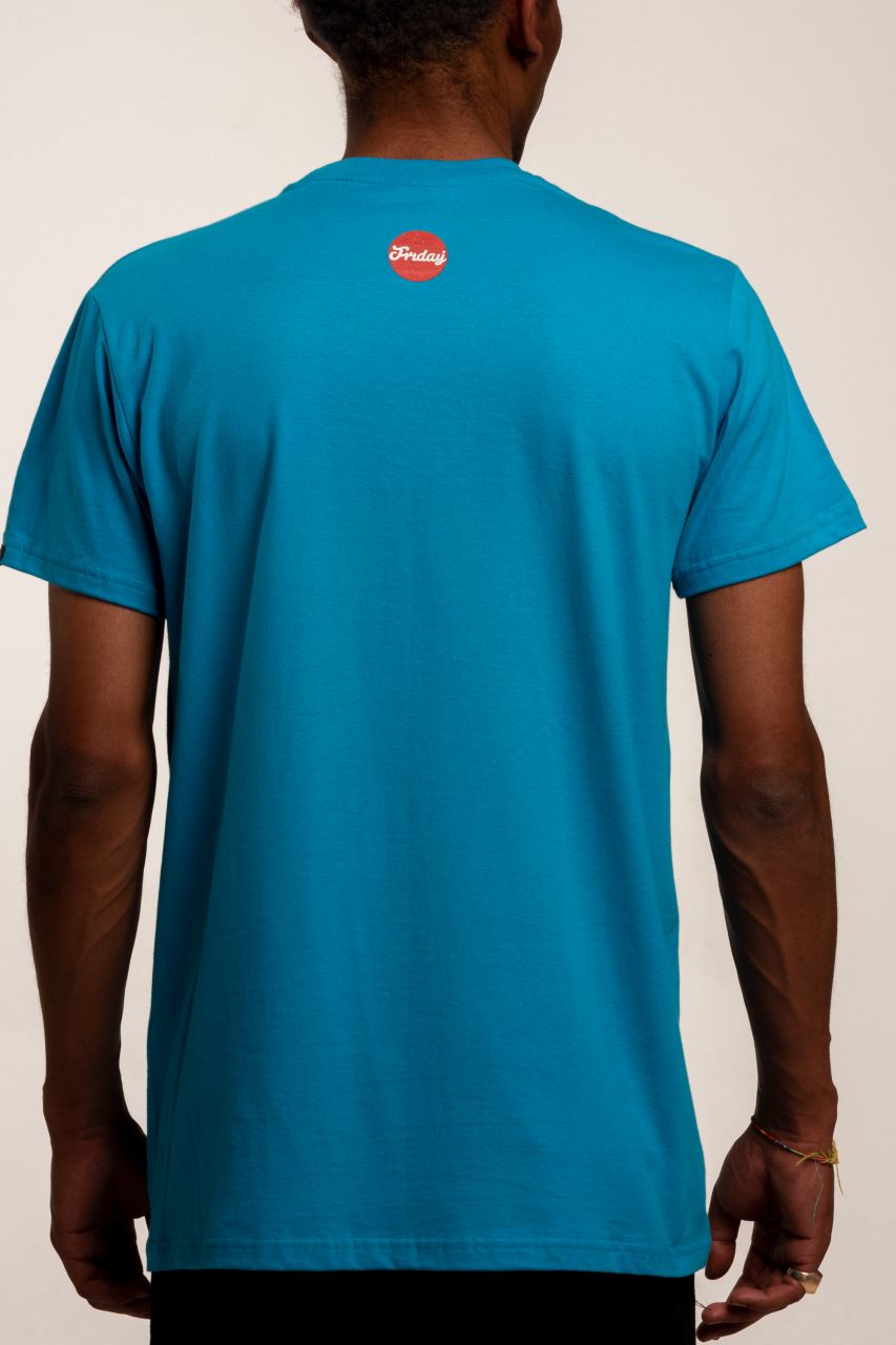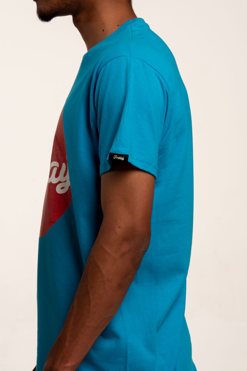Kék póló, elöl piros Friday logóval. A póló 100% pamut.